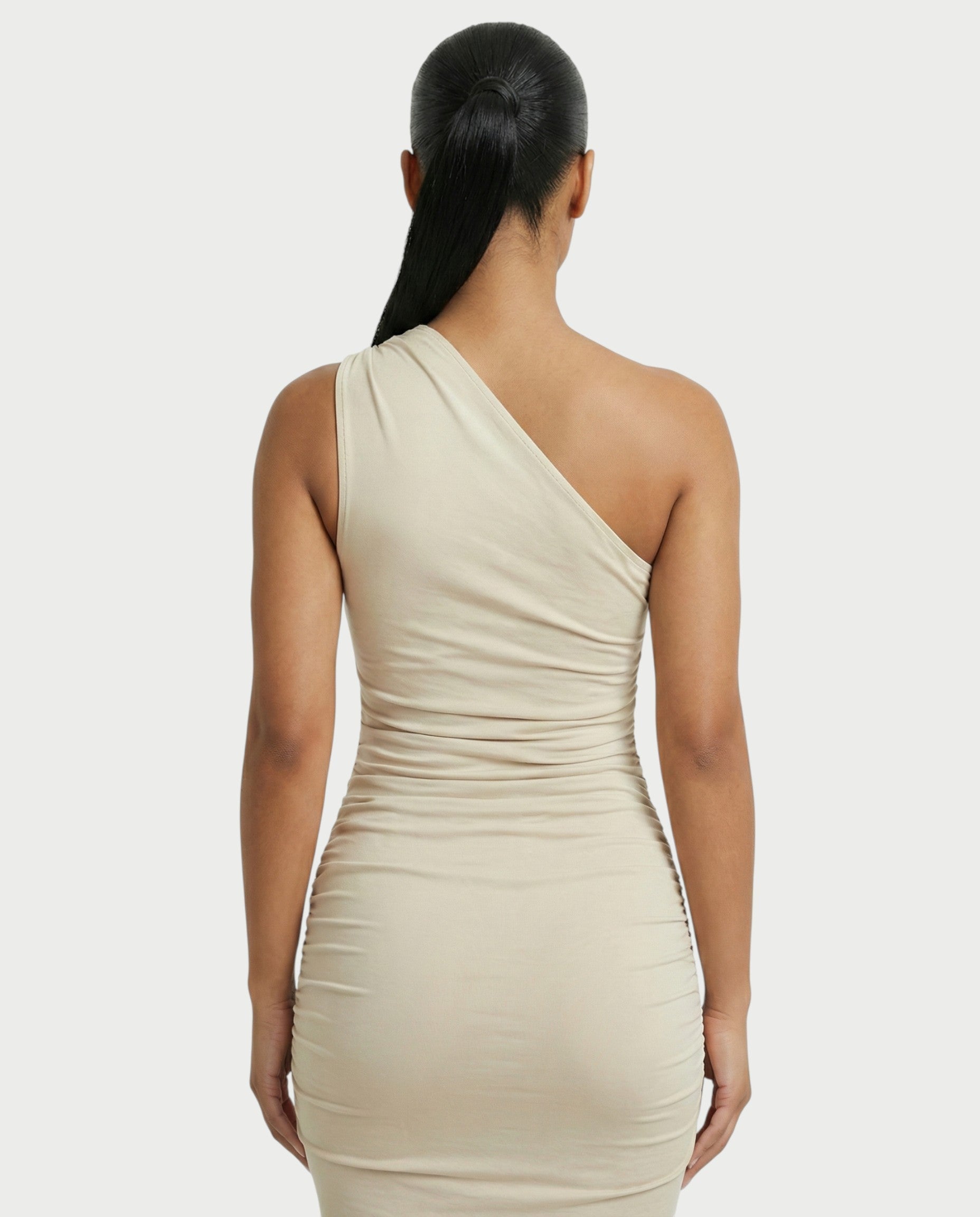 HANIMA One-Shoulder Ruched Maxi Dress